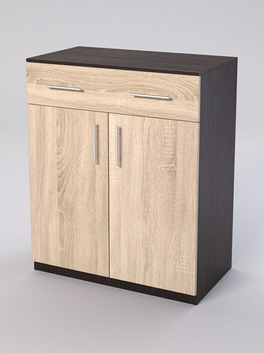 Тумба (1 выдвижной ящик и 2 секции с дверцами). Отлично подойдет как под офисную технику, так и для хранения документов.