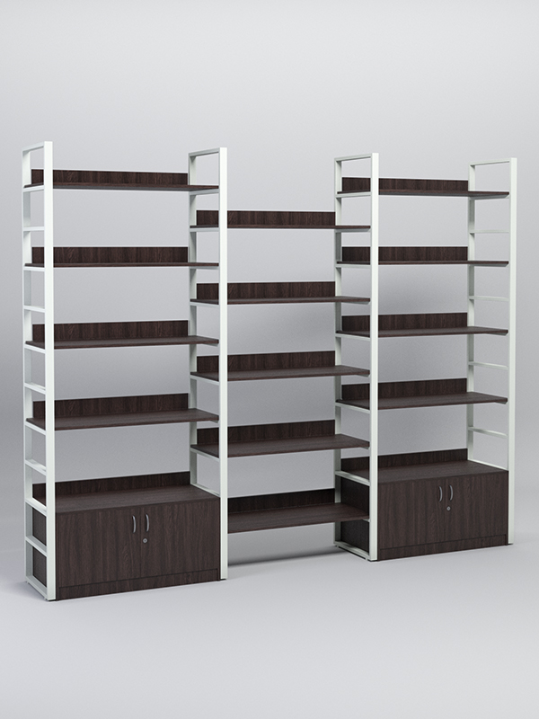 Комплект представляет собой сборную конструкцию из 2 основных модулей на 600 мм соединиенных комплектом полок (980мм) . Габаритный размер стеллажной конструкции — 2860мм.