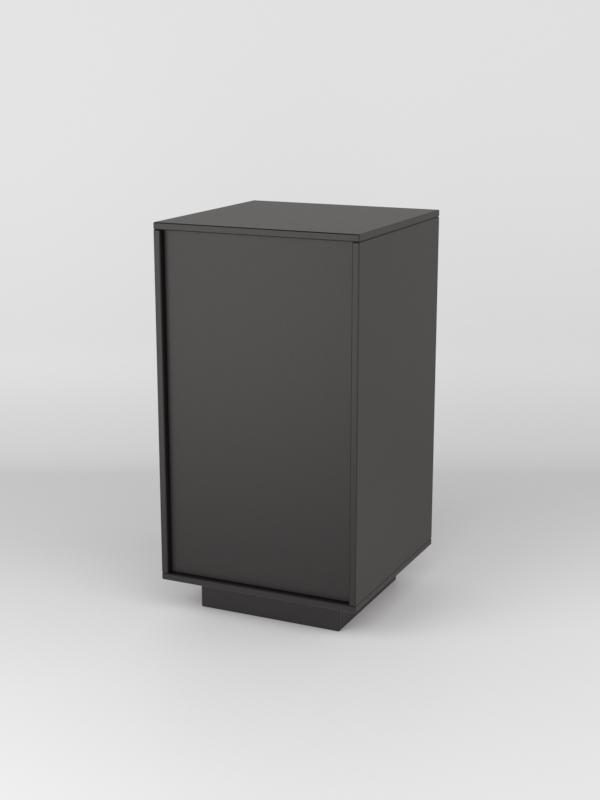Прилавок имеет закрытый фасад. Со стороны продавца прилавок открыт. Внутри модели имеется одна просторная полка.
