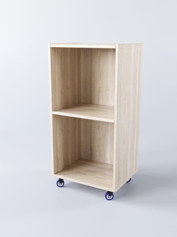 Прилавок выкатной, прямоугольный. Каркас выполнен из ЛДСП. Внутри имеется полка для размещения служебного инвентаря. Конструкция оборудована колесами. В ассортименте представлено семь вариантов расцветки.