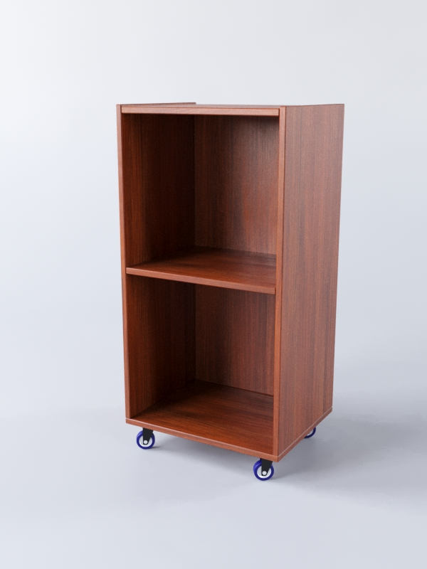 Прилавок выкатной, прямоугольный. Каркас выполнен из ЛДСП. Внутри имеется полка для размещения служебного инвентаря. Конструкция оборудована колесами. В ассортименте представлено семь вариантов расцветки.
