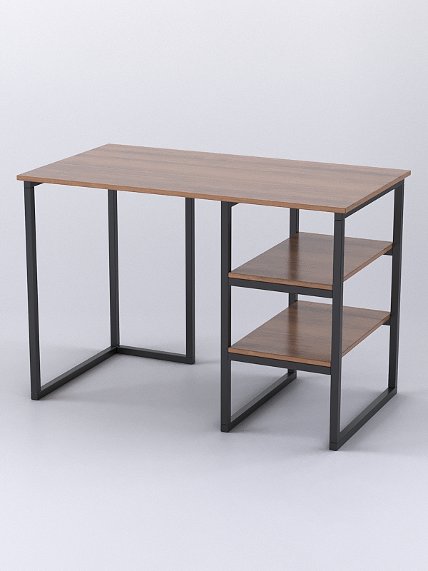 Стол состоит из столешницы, двух полок и прочного металлического каркаса.