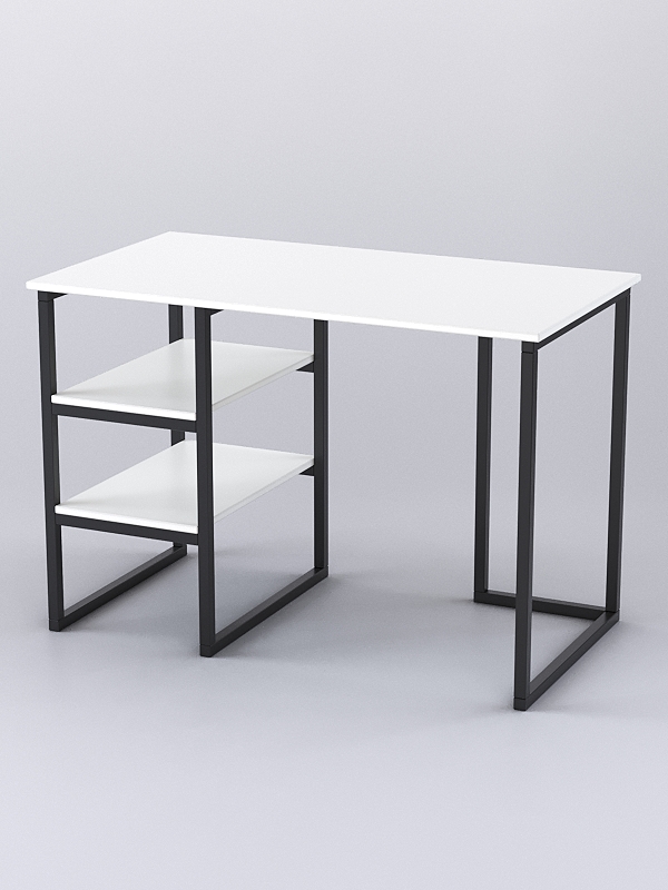 Стол состоит из столешницы, двух полок и прочного металлического каркаса.