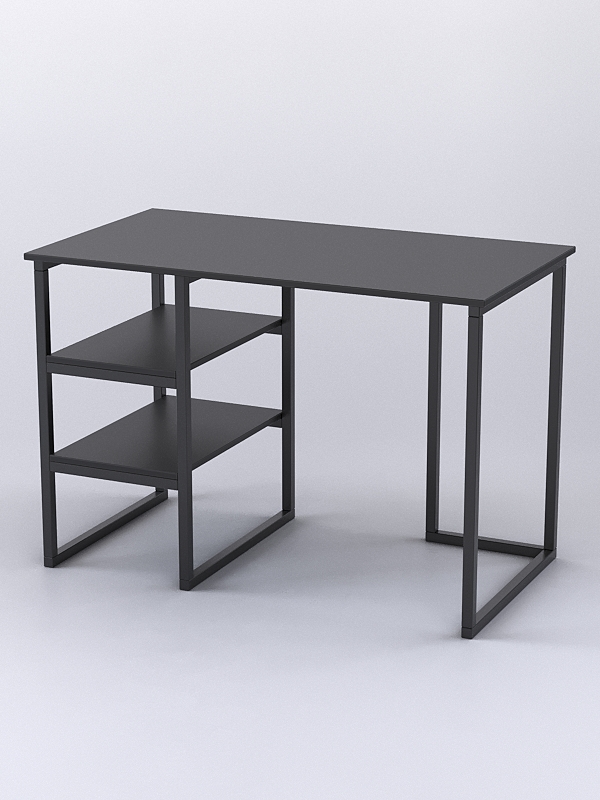 Стол состоит из столешницы, двух полок и прочного металлического каркаса.