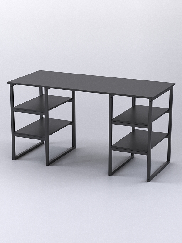 Стол состоит из столешницы, четырех одинаковых по размеру полок справа и слева и прочного металлического каркаса.
