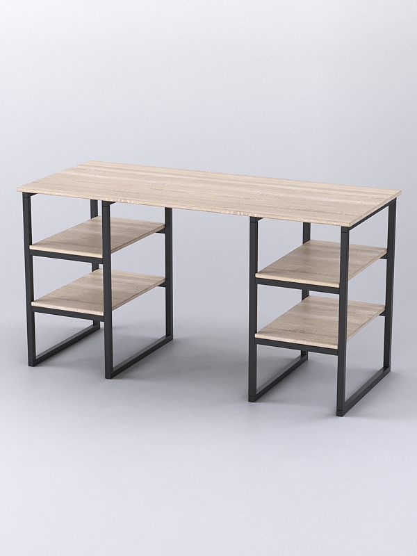 Стол состоит из столешницы, четырех одинаковых по размеру полок справа и слева и прочного металлического каркаса.