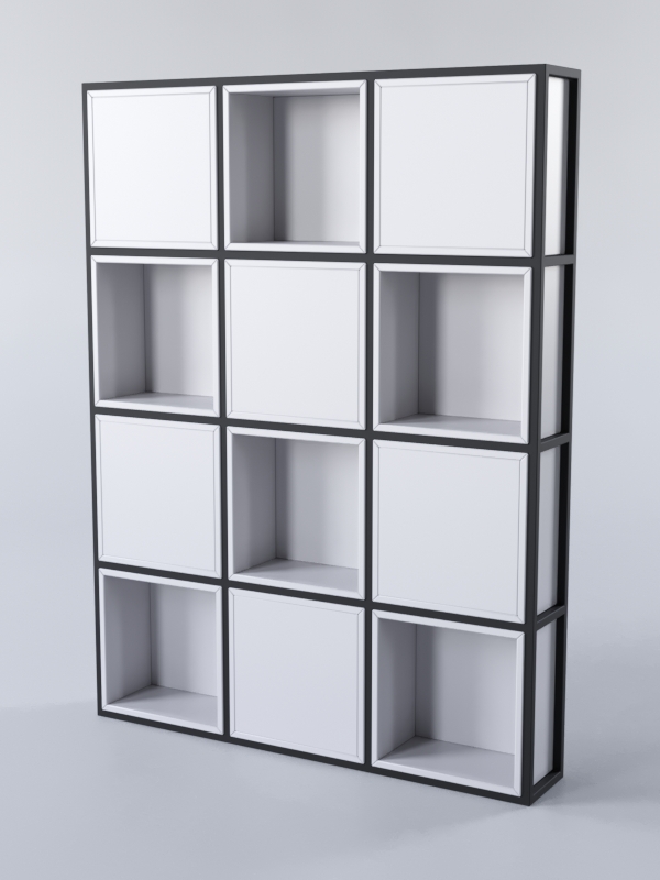 Данный стеллаж состоит из двенадцати ячеек, шесть из которых являются закрытыми. Симметричный дизайн стеллажа дает ощущение порядка и стабильности и подойдет интерьерам в скандинавском, классическом или хай-тек стиле.