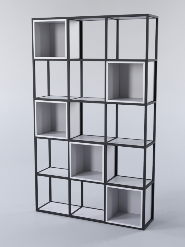 Данный стеллаж состоит из пятнадцати полок, пять из которых имеют стенки. Ассиметричный дизайн ячеек придает стеллажу оригинальность и поможет разбавить любой интерьер!