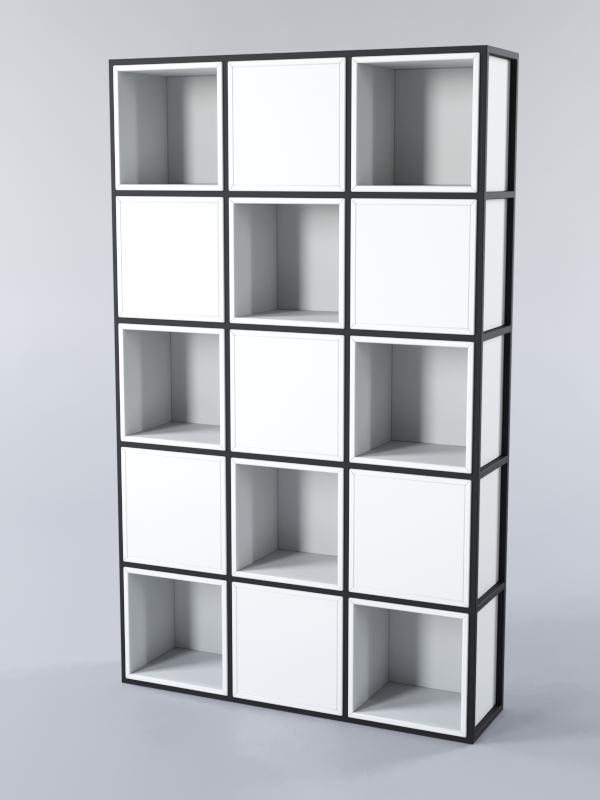 Данный стеллаж состоит из пятнадцати ячеек, семь из которых являются закрытыми. Симметричный дизайн стеллажа дает ощущение порядка и стабильности и подойдет интерьерам в скандинавском, классическом или хай-тек стиле.
