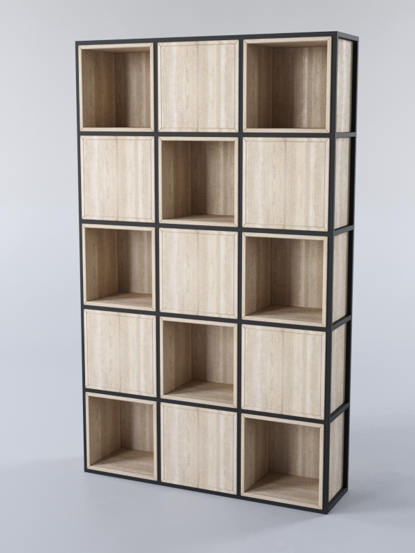 Данный стеллаж состоит из пятнадцати ячеек, семь из которых являются закрытыми. Симметричный дизайн стеллажа дает ощущение порядка и стабильности и подойдет интерьерам в скандинавском, классическом или хай-тек стиле.