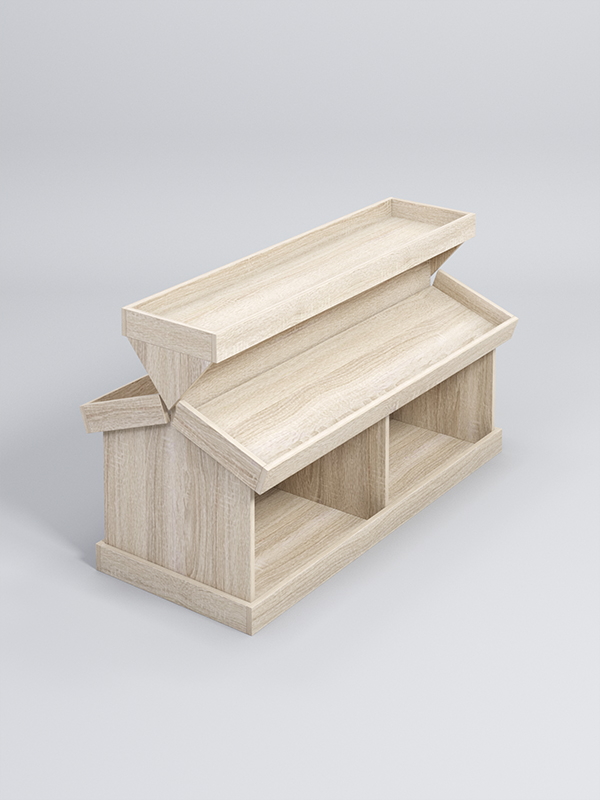 Стеллаж для овощей и фруктов виде островной конструкции. Витрина предназначена для демонстрации и продажи. Отличается стильным дизайном и удобством для покупателей. Внутри имеется зона выкладки разделенная на две секций. Конструкция подходит для размещения большого количества товаров. Выглядит презентабельно, дополняет любой интерьер.