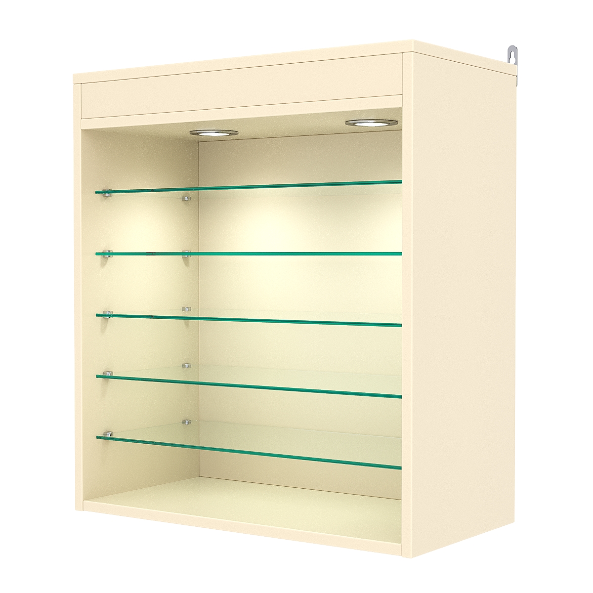 Кол-во полок из стекла 6 мм: 5 шт, расстояние между которыми 89 мм, глубина 254 мм;