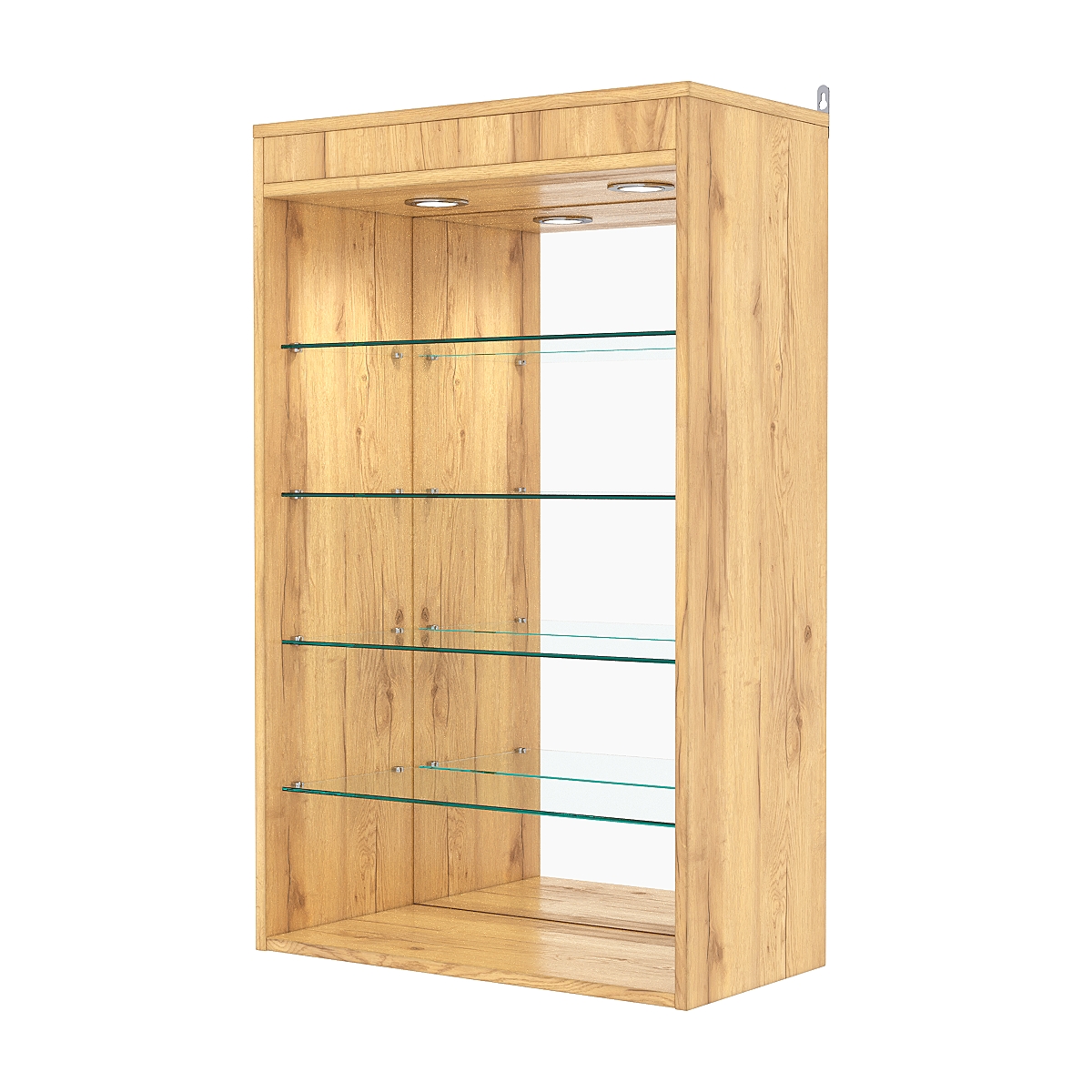Витрина настенная №2-4ГГ с зеркалом и с подсветкой, Дуб Золотистый