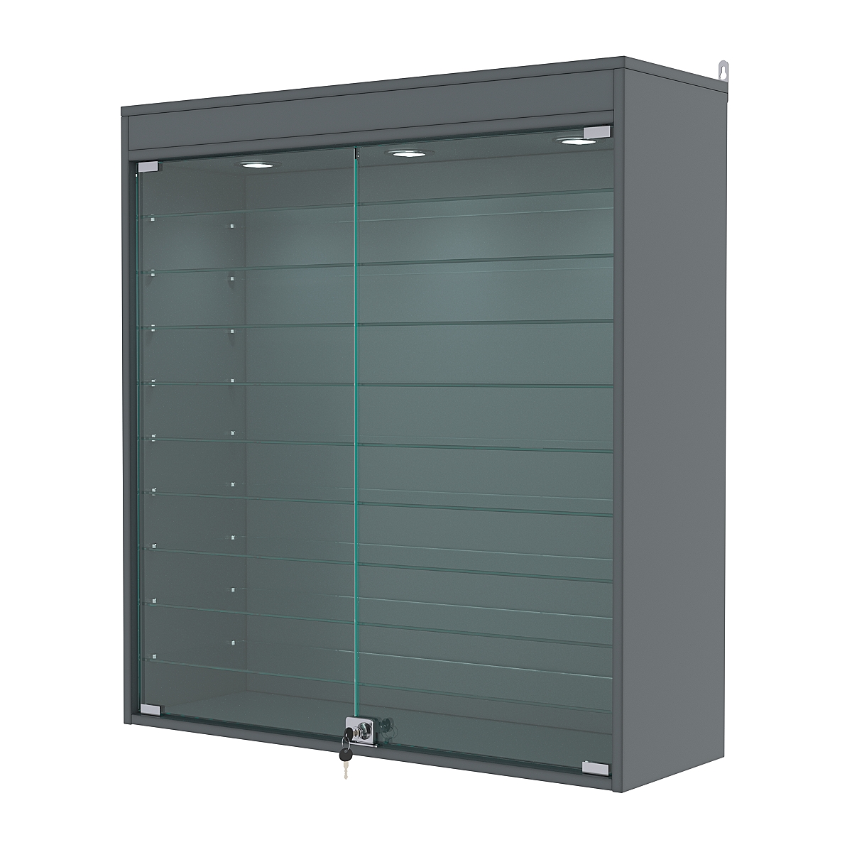 Витрина настенная №4-7АГ с подсветкой, Темно-Серый