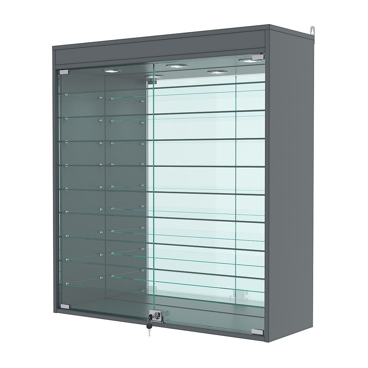 Витрина настенная №4-8АГ с зеркалом и с подсветкой, Темно-Серый