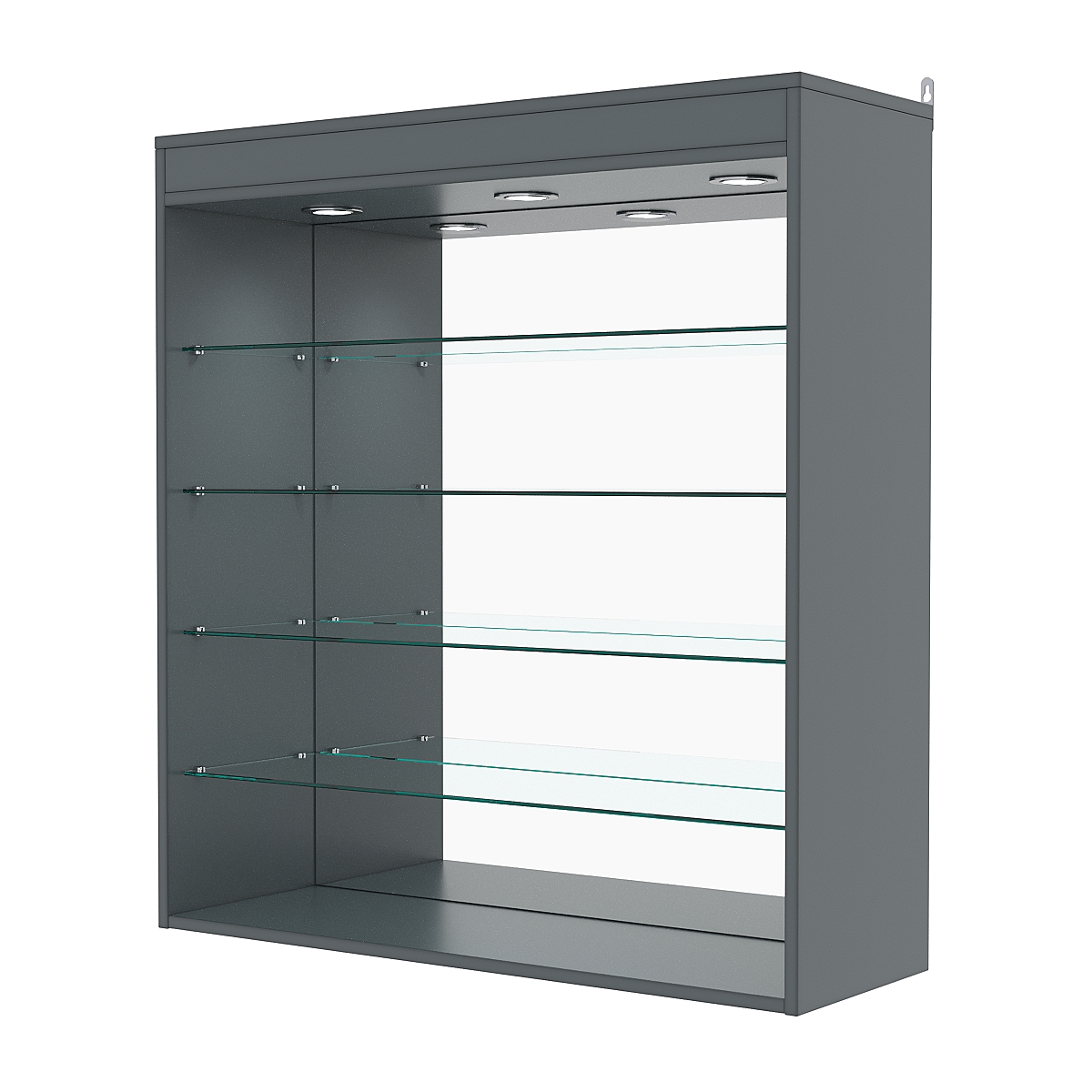 Витрина настенная №4-4ГГ с зеркалом и с подсветкой, Темно-Серый