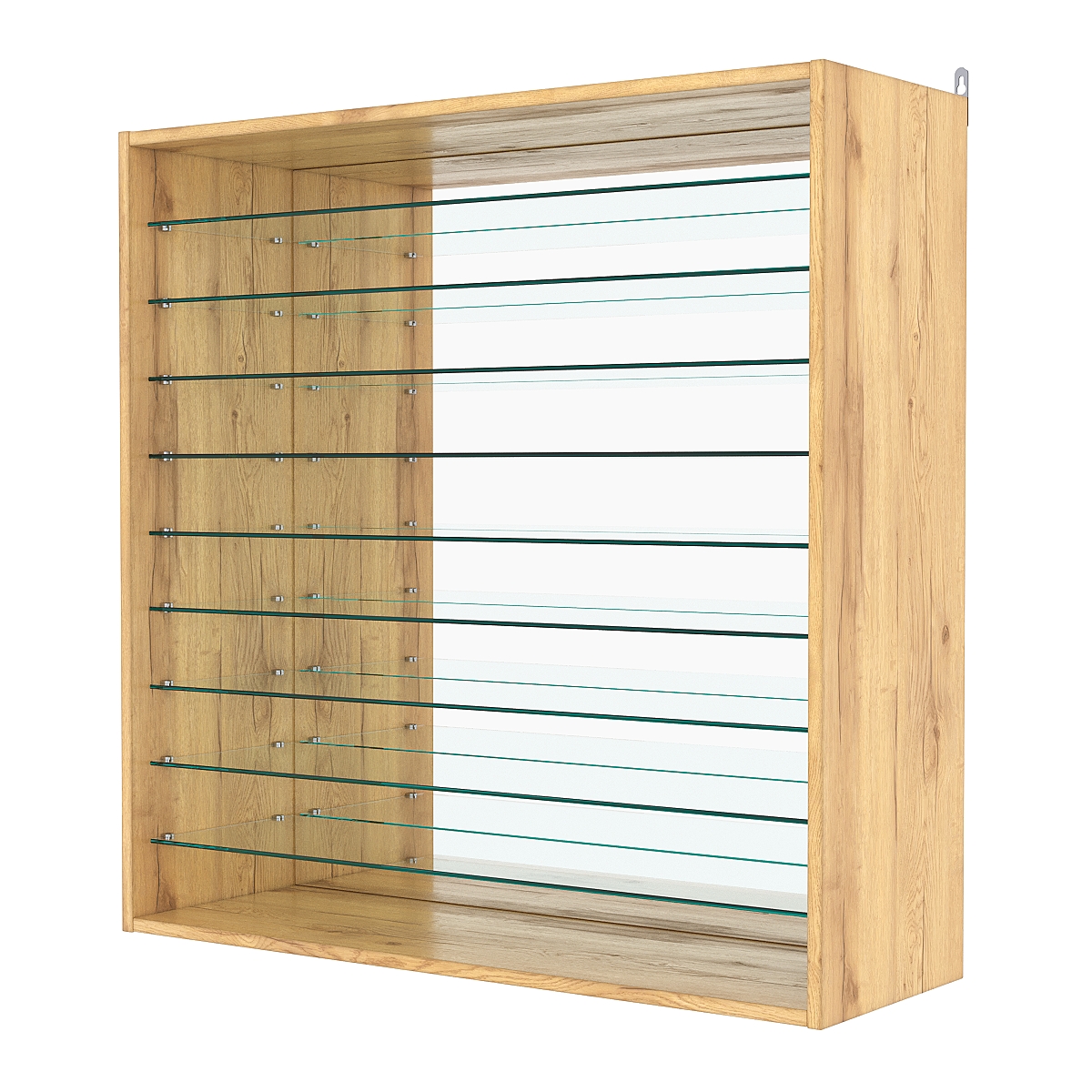 Кол-во полок из стекла 6мм: 9шт, расстояние между которыми 81мм, глубина пполок 254мм;