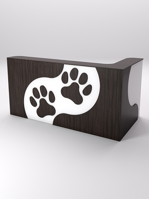 Невысокая стойка администратора, украшенная отпечатком лапы кошки, с первых минут пребывания в компании покажет вашим посетителям то, что забота о животных — главный приоритет вашей организации.