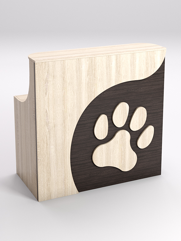 Невысокая стойка администратора, украшенная отпечатком лапы кошки, с первых минут пребывания в компании покажет вашим посетителям то, что забота о животных — главный приоритет вашей организации.