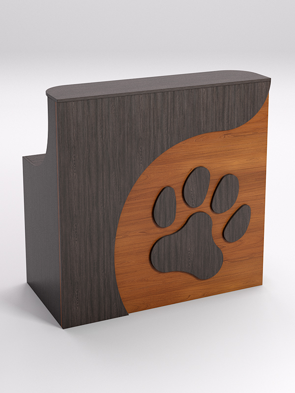 Невысокая стойка администратора, украшенная отпечатком лапы кошки, с первых минут пребывания в компании покажет вашим посетителям то, что забота о животных — главный приоритет вашей организации.