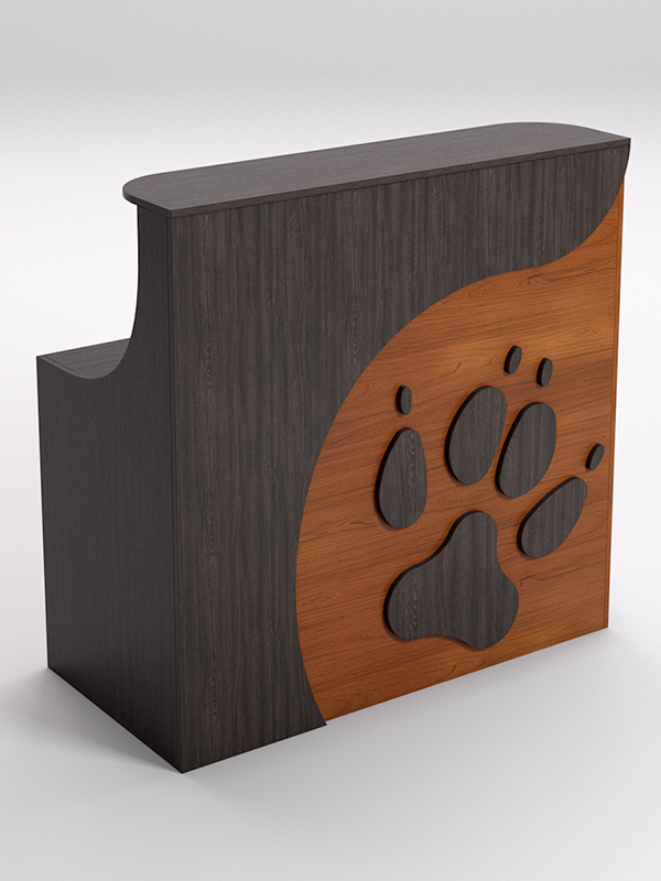 Невысокая стойка администратора, украшенная отпечатком лапы собаки, с первых минут пребывания в компании покажет вашим посетителям то, что забота о животных — главный приоритет вашей организации.