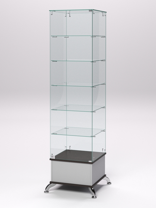 Витрина стеклянная ПРИМАВЕРА ПОДИУМ КЛАССИК №510 (с дверкой, задняя стенка — стекло), Серый и Дуб Венге