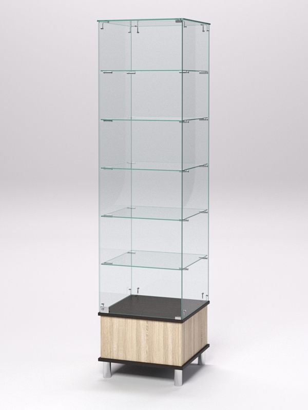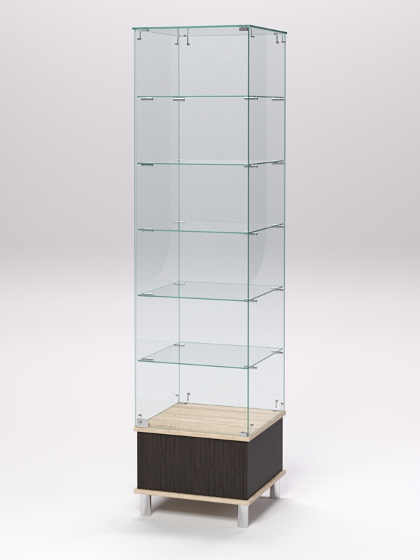 Витрина стеклянная "ПРИМАВЕРА ПОДИУМ МОДЕРН" №510 (с дверкой, задняя стенка — стекло), Дуб Венге и Дуб Сонома
