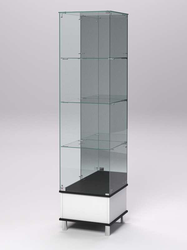 Витрина стеклянная "ПРИМАВЕРА ПОДИУМ МОДЕРН" №12 (с дверкой, задняя стенка — зеркало), Белый и Черный