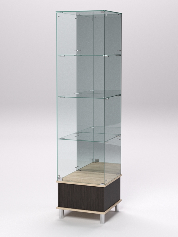 Витрина стеклянная "ПРИМАВЕРА ПОДИУМ МОДЕРН" №12 (с дверкой, задняя стенка — зеркало), Дуб Венге и Дуб Сонома