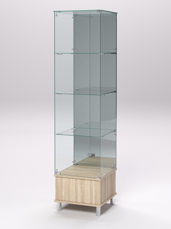 Витрина стеклянная "ПРИМАВЕРА ПОДИУМ МОДЕРН" №12 (с дверкой, задняя стенка — зеркало), Дуб Сонома