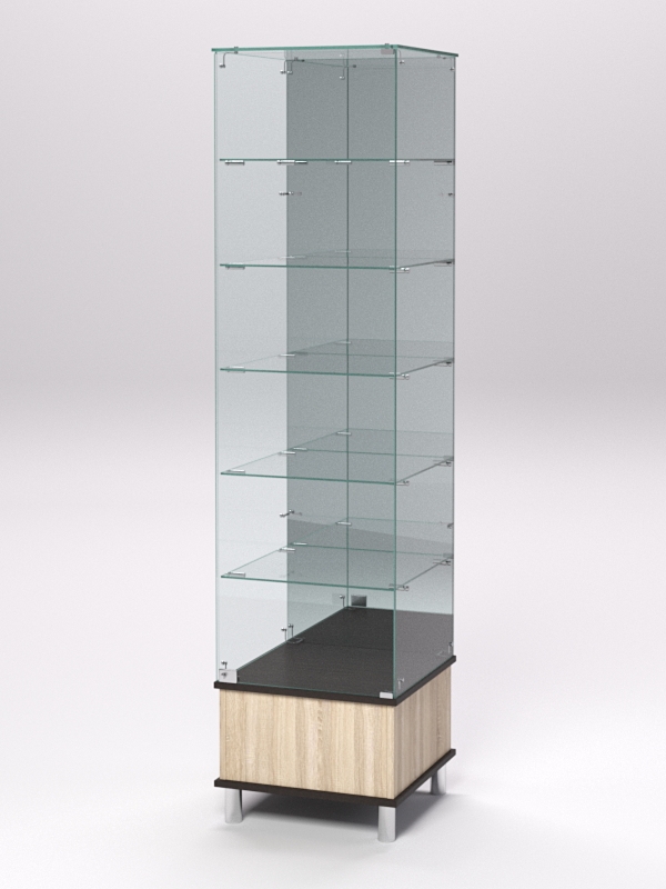 Витрина стеклянная "ПРИМАВЕРА ПОДИУМ МОДЕРН" №512 (с дверкой, задняя стенка — зеркало), Дуб Сонома и Дуб Венге