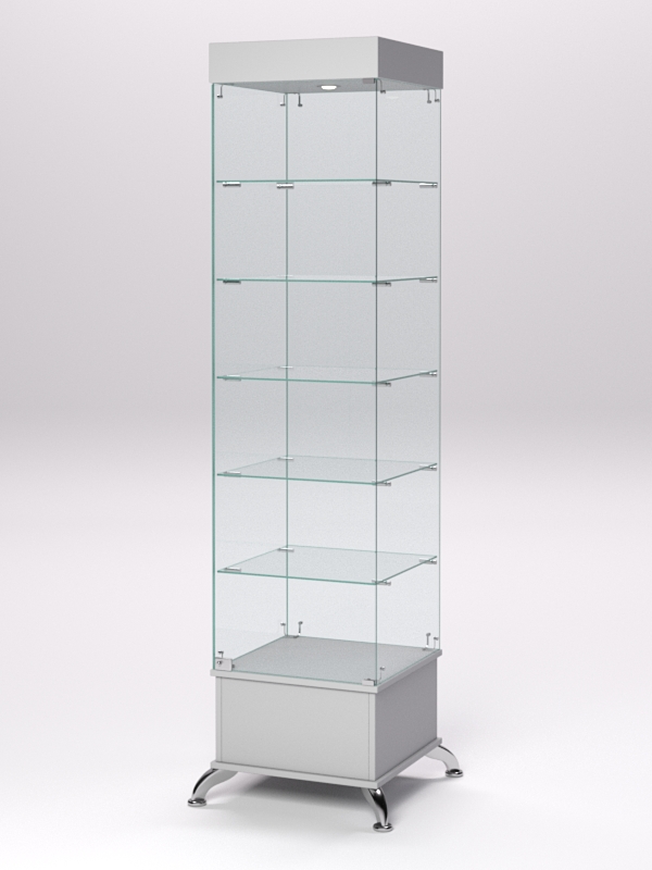 Витрина стеклянная "ПРИМАВЕРА ПОДИУМ КЛАССИК" №510-Ф (с дверкой, задняя стенка — стекло), Серый