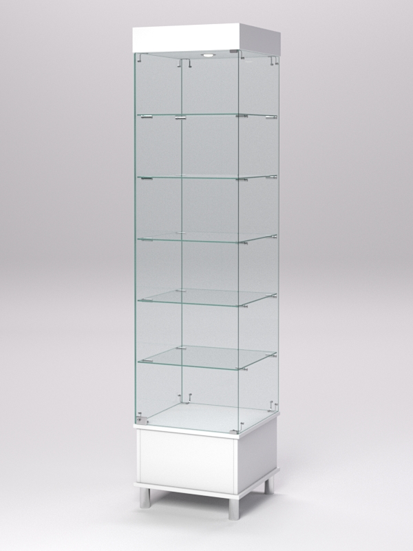 Витрина стеклянная "ПРИМАВЕРА ПОДИУМ МОДЕРН" №510-Ф (с дверкой, задняя стенка — стекло), Белый