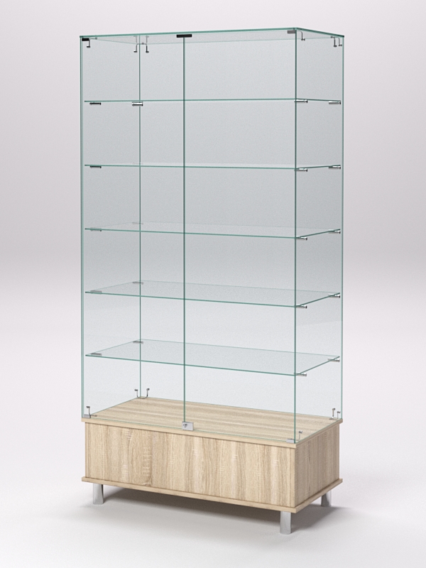 Витрина стеклянная "ПРИМАВЕРА ПОДИУМ МОДЕРН" №509 (с дверками, задняя стенка — стекло), Дуб Сонома