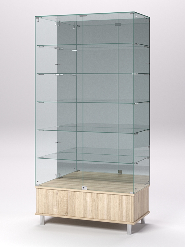Витрина стеклянная "ПРИМАВЕРА ПОДИУМ МОДЕРН" №511 (с дверками, задняя стенка — зеркало), Дуб Сонома