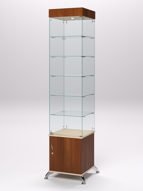 Витрина стеклянная "ПРИМА КЛАССИК" №502 (с дверкой, задняя стенка — стекло), Орех и Дуб Сонома