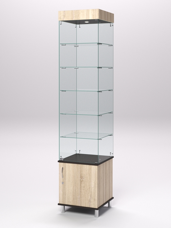 Витрина стеклянная "ПРИМА МОДЕРН" №502 (с дверкой, задняя стенка — стекло), Дуб Сонома и Дуб Венге