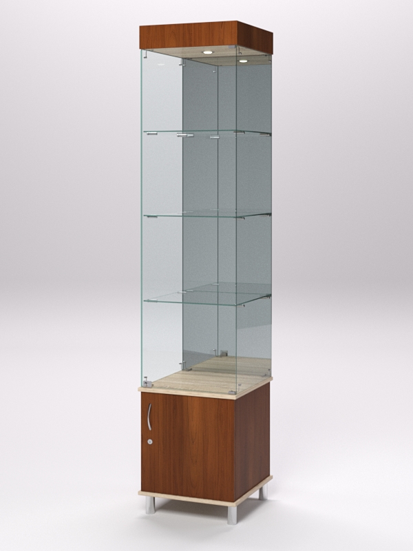 Витрина стеклянная "ПРИМА МОДЕРН" №4 (с дверкой, задняя стенка — зеркало), Орех и Дуб Сонома