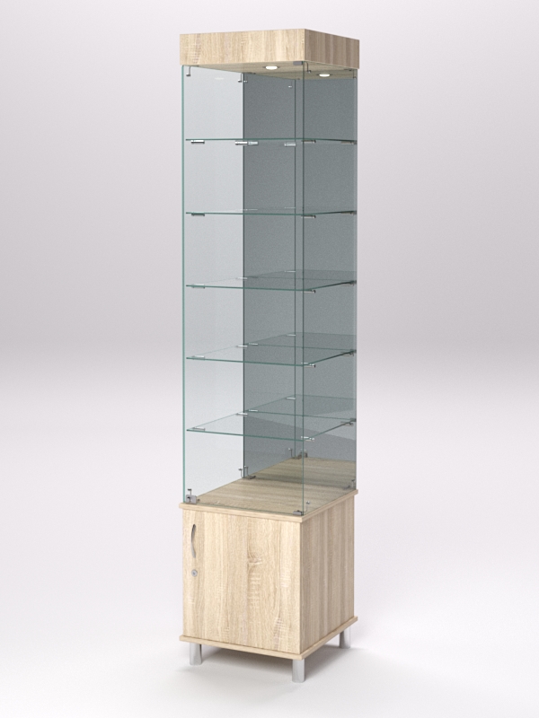 Витрина стеклянная "ПРИМА МОДЕРН" №504 (с дверкой, задняя стенка — зеркало), Дуб Сонома