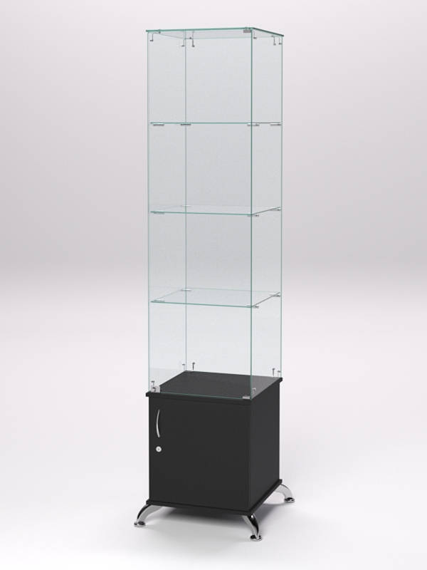 Витрина стеклянная "ПРИМА КЛАССИК" №6 (с дверкой, задняя стенка — стекло), Черный