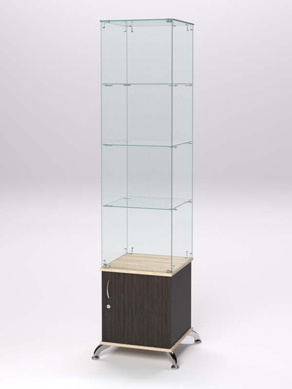 Витрина стеклянная "ПРИМА КЛАССИК" №6 (с дверкой, задняя стенка — стекло), Дуб Венге и Дуб Сонома