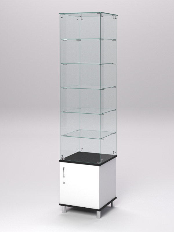 Витрина стеклянная "ПРИМА МОДЕРН" №506 (с дверкой, задняя стенка — стекло), Белый и Черный