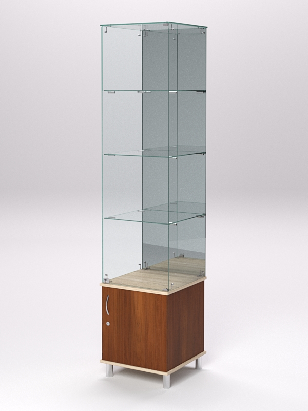 Витрина стеклянная "ПРИМА МОДЕРН" №8 (с дверкой, задняя стенка — зеркало), Орех и Дуб Сонома