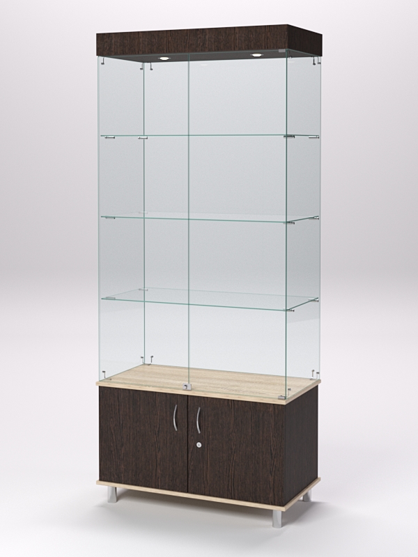 Витрина стеклянная "ПРИМА МОДЕРН" №1 (с дверками, задняя стенка — стекло), Дуб Венге и Дуб Сонома