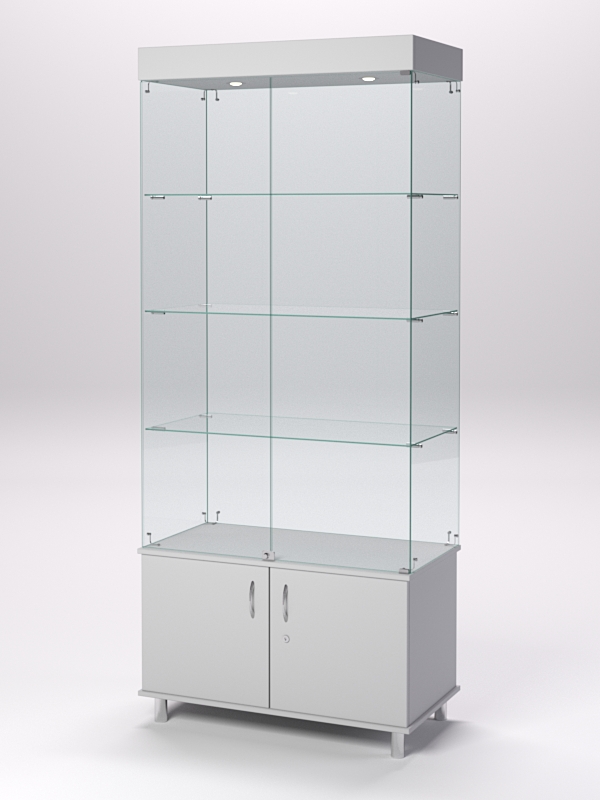 Витрина стеклянная "ПРИМА МОДЕРН" №1 (с дверками, задняя стенка — стекло), Серый