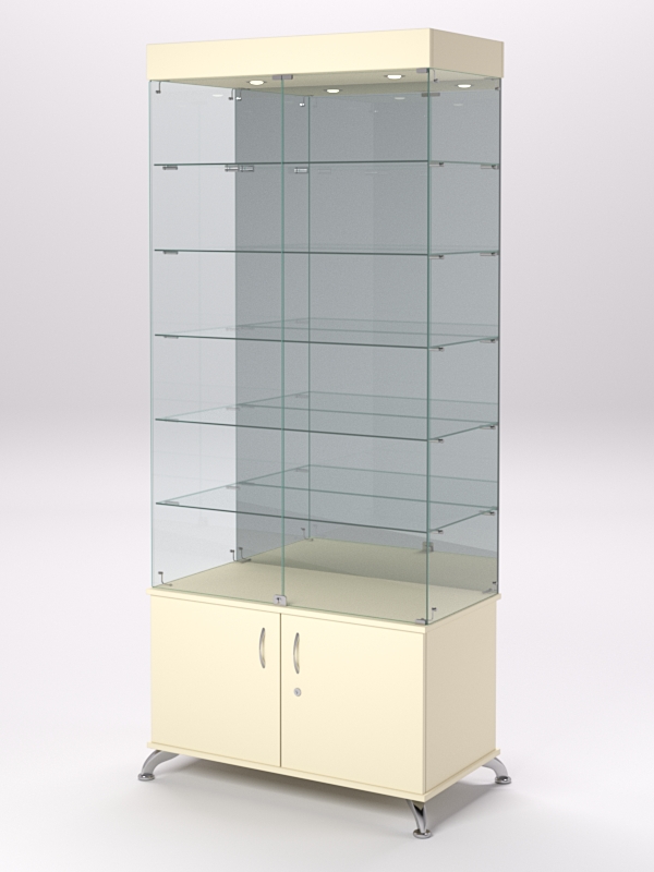 Витрина стеклянная "ПРИМА КЛАССИК" №503 (с дверками, задняя стенка — зеркало), Крем Вайс