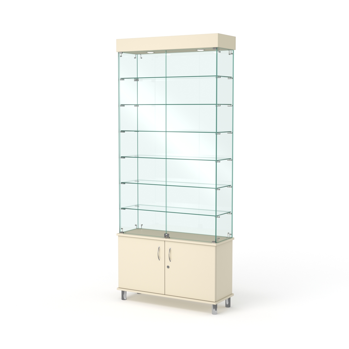 Витрина стеклянная "ПРИМА МОДЕРН" №31 (с дверками, задняя стенка — стекло), Крем Вайс