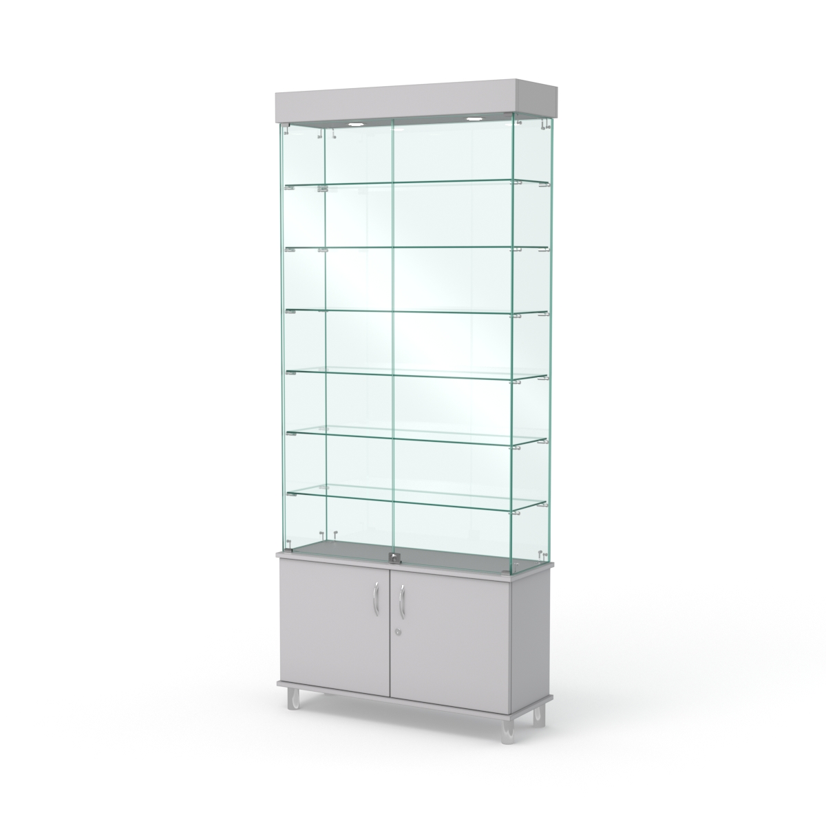 Витрина стеклянная "ПРИМА МОДЕРН" №31 (с дверками, задняя стенка — стекло), Серый
