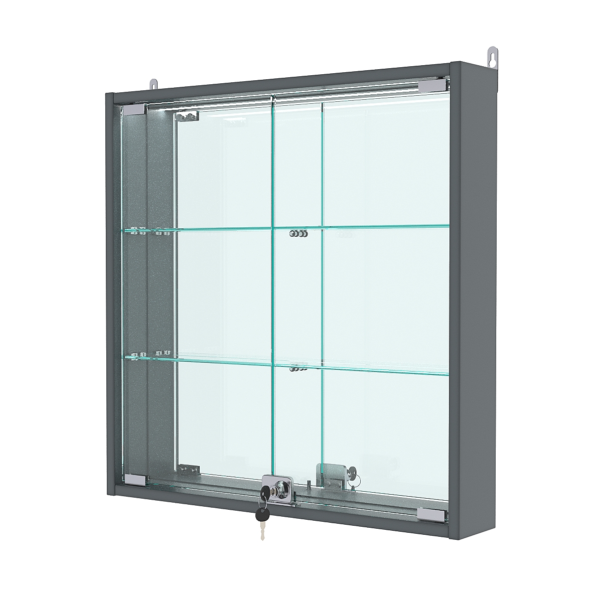 Витрина настенная №1-4АУ с зеркалом и с подсветкой, Темно-Серый