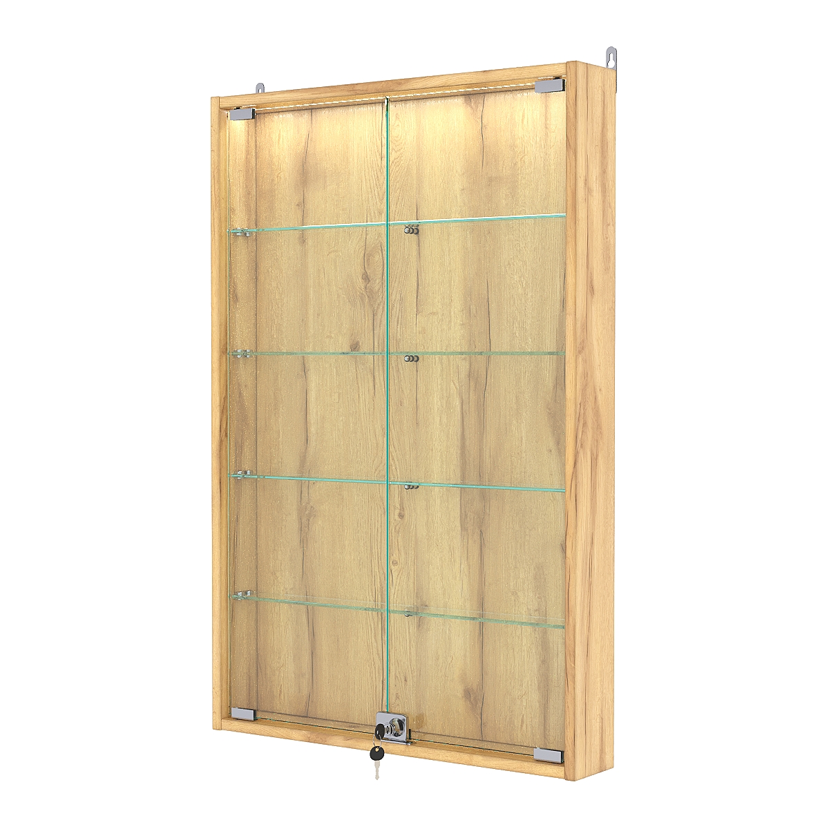 Витрина настенная №2-3АУ с подсветкой, Дуб Золотистый